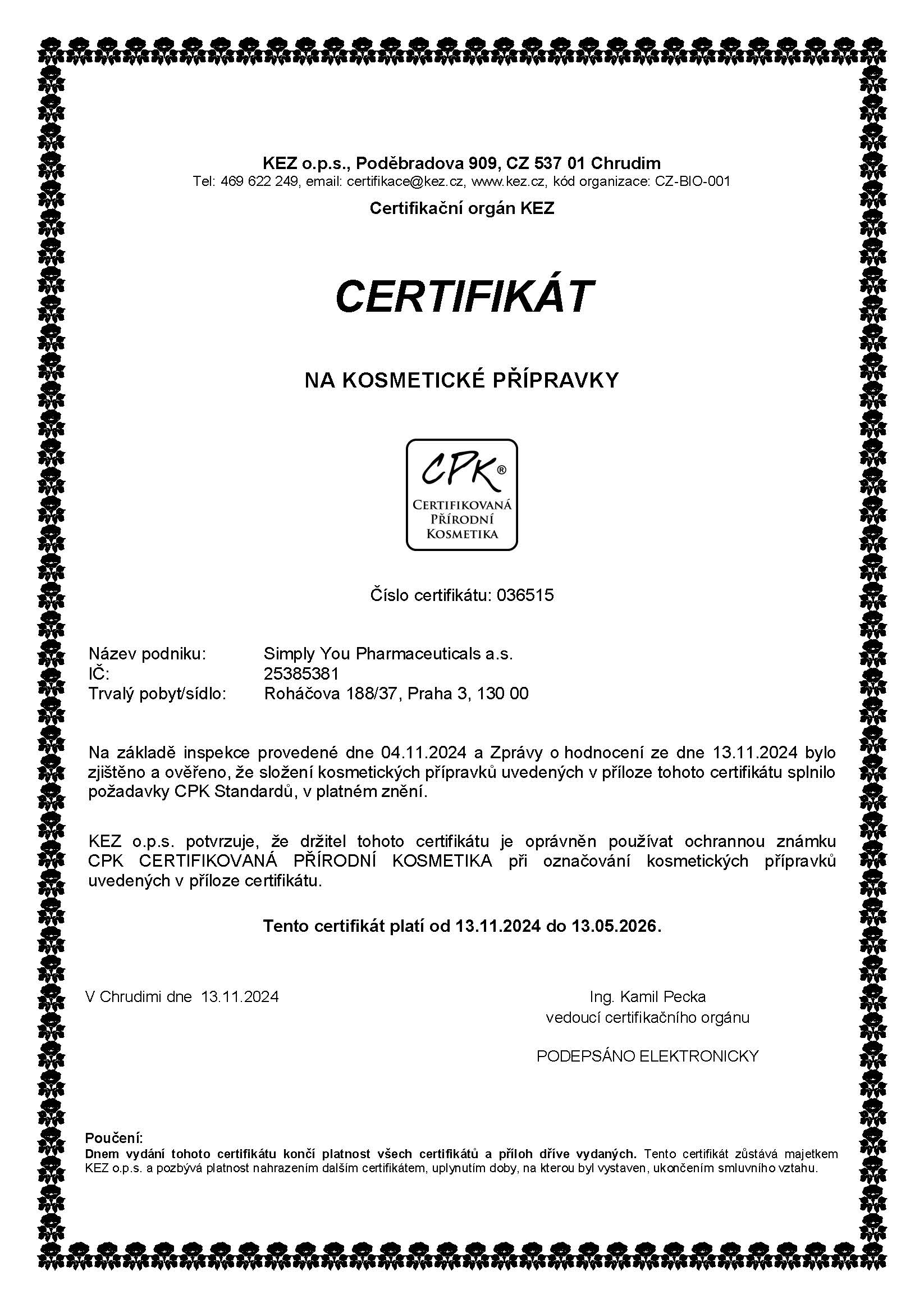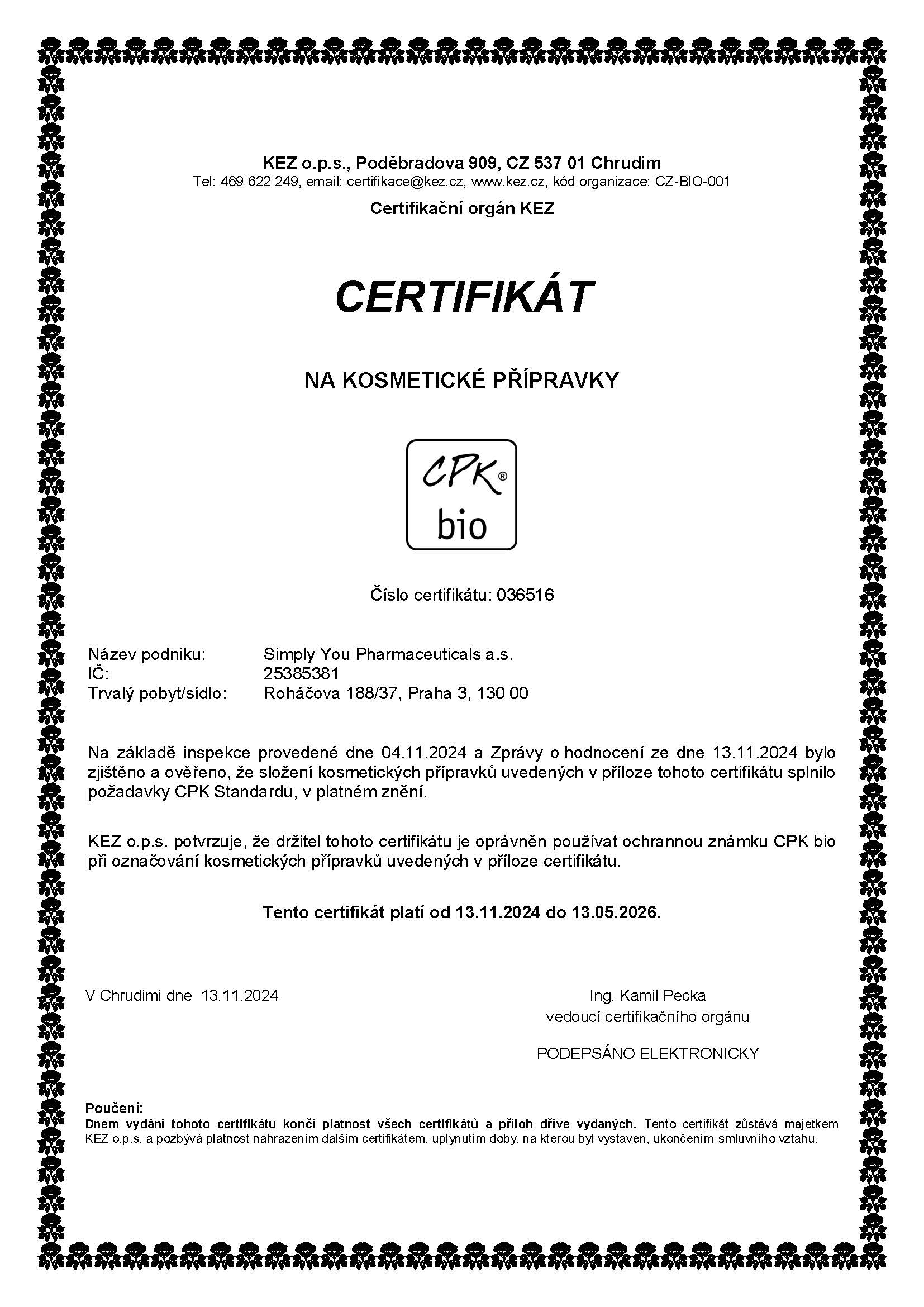 CPK (Certifikovaná přírodní kosmetika) je značka kvality, kterou uděluje nezávislá certifikační organizace KEZ o.p.s.. Ta důkladně posuzuje nejen složení kosmetických produktů, ale i způsob jejich výroby. Aby mohl produkt nést označení CPK, musí splňovat přísně stanovené standardy. Tyto standardy jasně a transparentně vymezují pravidla jak pro výrobce, tak pro dodavatele.